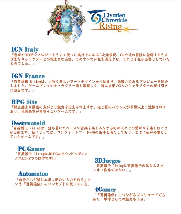 『百英雄伝Rising』を楽しんでもらえる事を願っています。